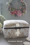 お茶箱にお好みの布やブレードで装飾しオリジナルの茶箱を作成します。茶箱内貼り、布貼り、金具取り付け装飾までトータルに学べます。