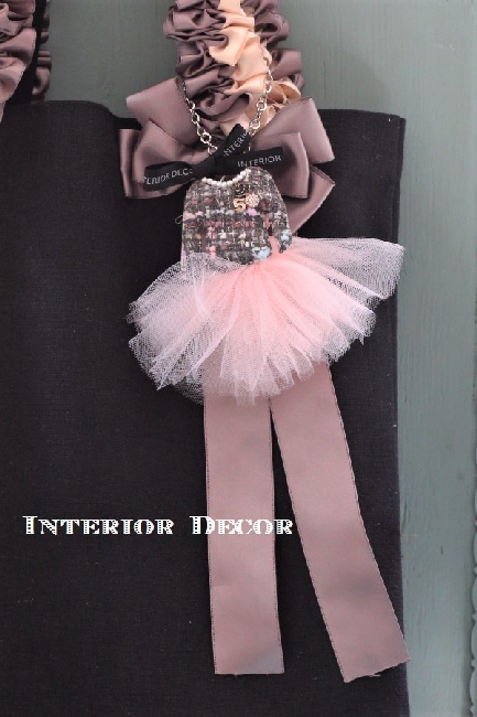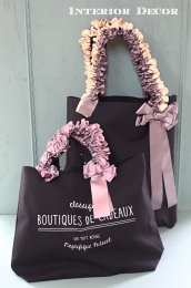 バックのハンドルにギャザーを寄せたリボンでドレスアップさせます。
