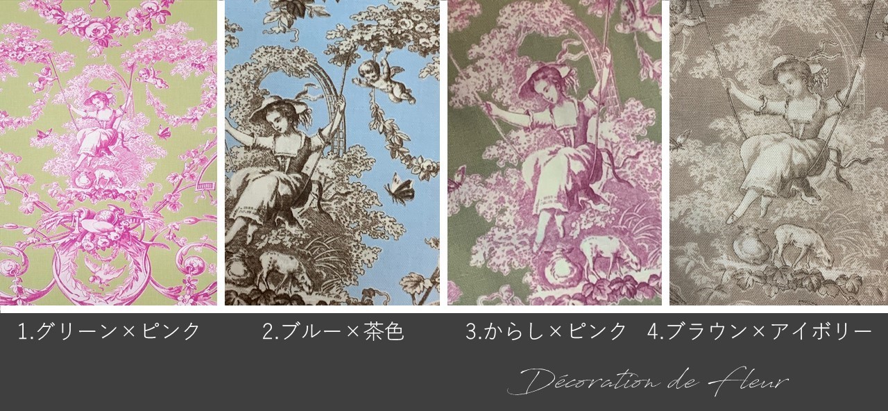 フランス製のトワルドジュイの柄は それぞれ柄の配置がちがうので