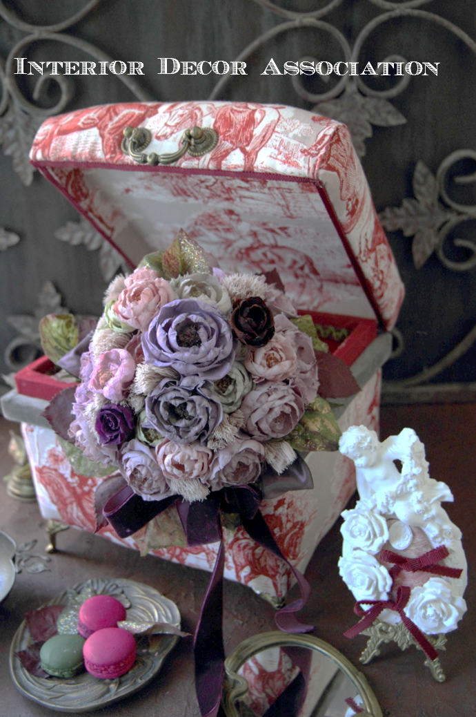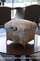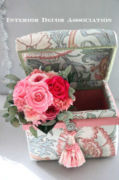 お茶箱に、お好みの布やブレードで装飾し オリジナルの茶箱を作成します。茶箱内貼り、布貼り、金具取り付け装飾までトータルに学べます。